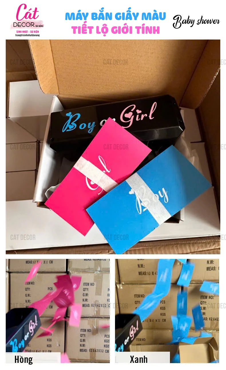 Thuê súng bắn giấy màu xanh hồng cho tiệc Baby Shower