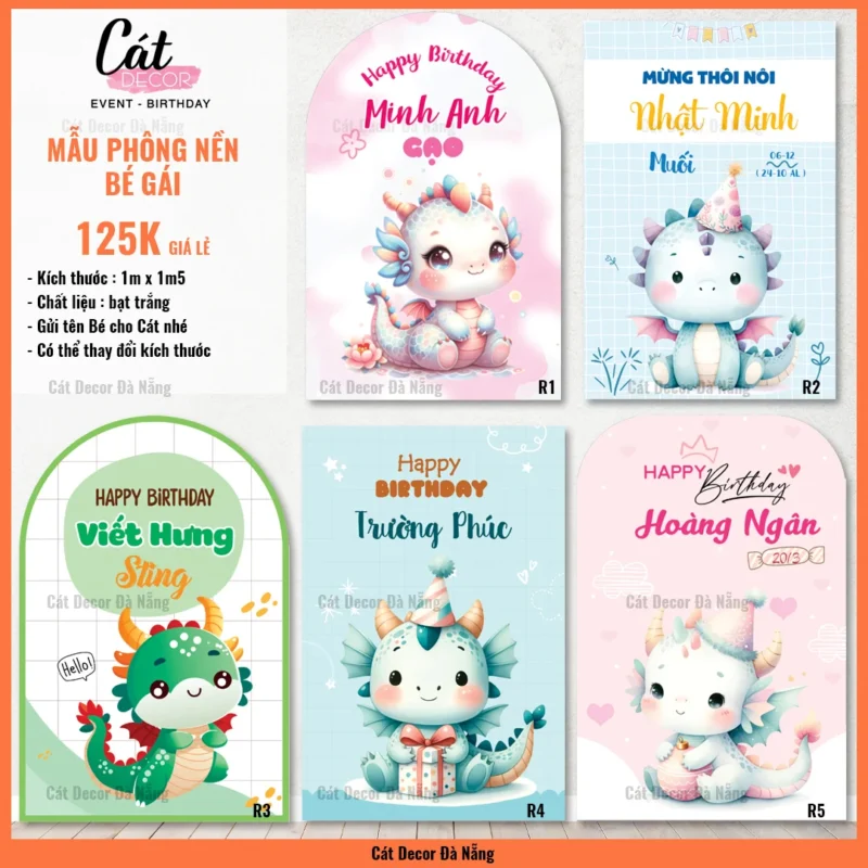 Phông nền được thiết kế có Tên và Tuổi của bé, hoặc bất kì nội dung theo yêu cầu