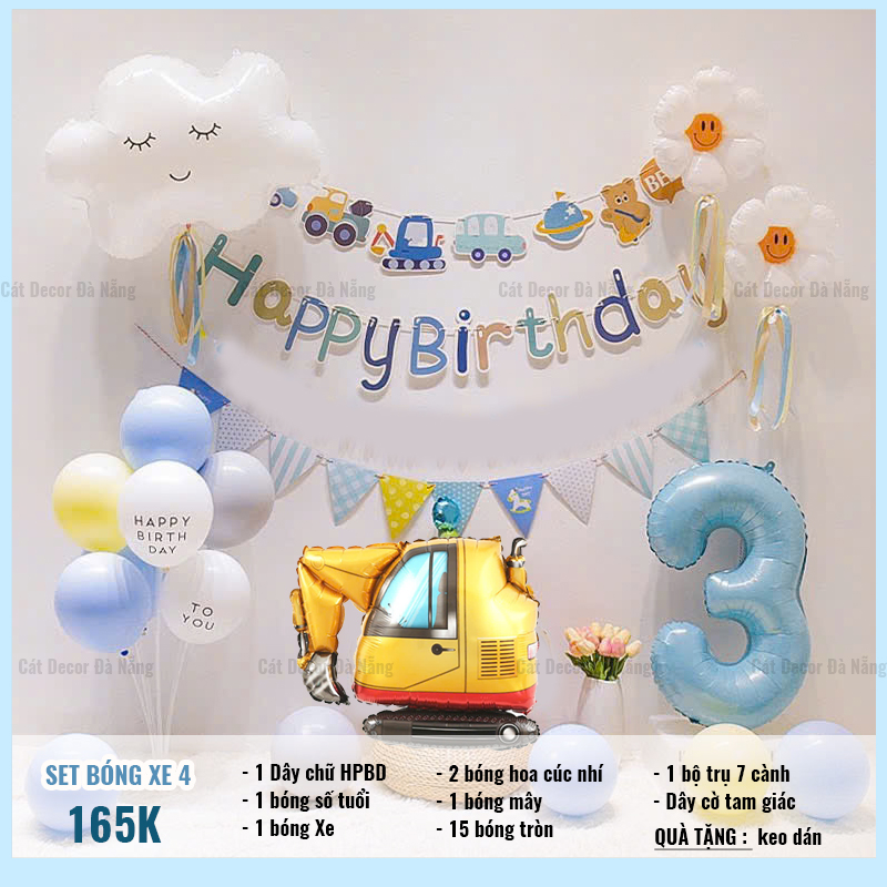 Set bóng trang trí sinh nhật cho bé trai chủ đề Xe đua.