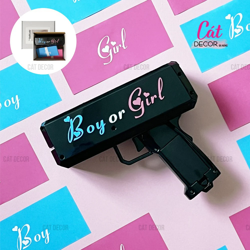 Súng bắn thẻ giấy xanh hồng cho tiệc Baby Shower