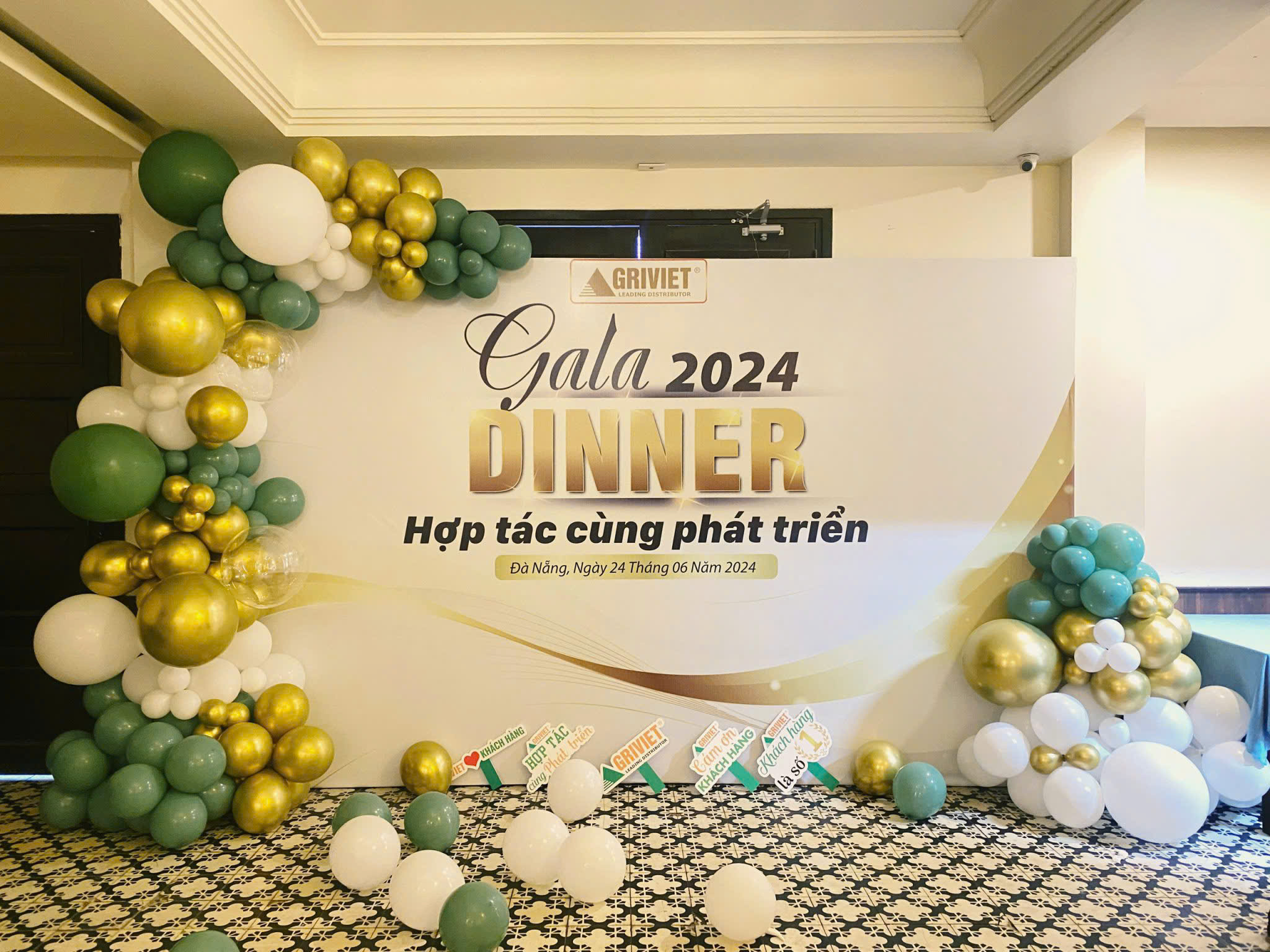 Khu vực cổng chào & Backdrop: Đây là nơi đầu tiên khách nhìn thấy và là khu vực chụp ảnh chính. Nên có logo công ty và tên chủ đề (Theme) của năm.